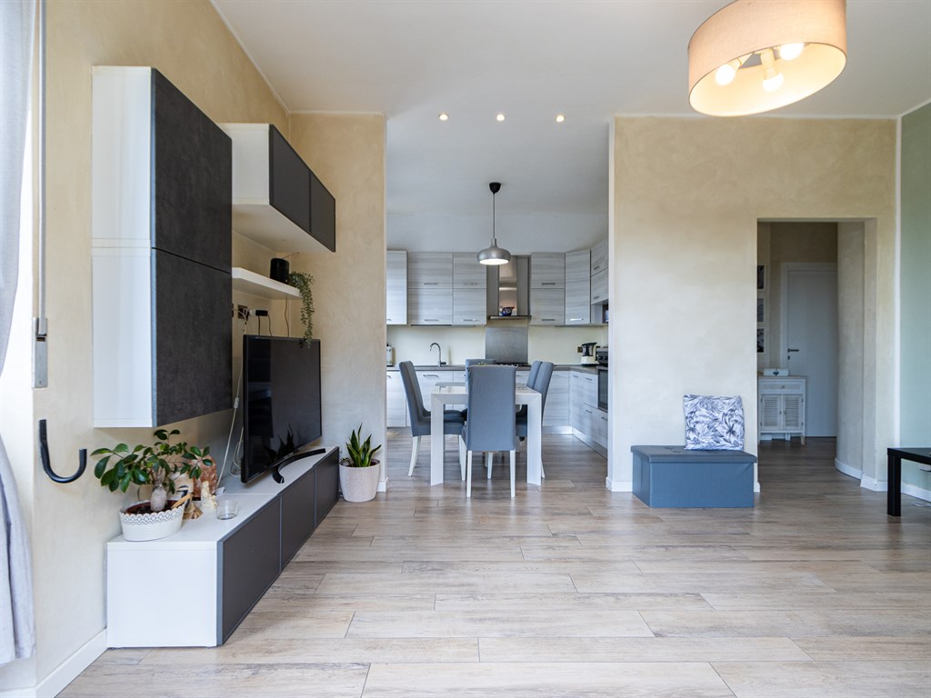 Nella tranquilla e panoramica frazione di Torrevilla, proponiamo in vendita un appartamento al piano primo, ideale per chi desidera vivere in un contesto silenzioso e circondato dal verde, con una splendida vista aperta sui monti lecchesi. L’immobile, inserito in una palazzina risalente al 1965, è stato completamente ristrutturato internamente cinque anni fa con interventi curati nei dettagli: i pavimenti sono stati sostituiti con un elegante gres effetto parquet, che dona calore e uniformità a tutti gli ambienti, mentre nel bagno è stata scelta una piastrella grigia di grande formato, con la doccia a filo pavimento, moderna e funzionale. Anche le porte interne sono state completamente rinnovate, oggi bianche e in linea con uno stile contemporaneo, mentre i serramenti esterni sono ancora quelli originali, in legno, mantenuti in buone condizioni. L’abitazione si sviluppa su una pianta razionale e ben distribuita: all’ingresso si accede all’ampio soggiorno che affaccia sul balcone angolare, ideale per godere della tranquillità e del panorama circostante. La cucina è collegata direttamente al soggiorno, molto luminosa e funzionale. La zona notte è composta da due camere matrimoniali di cui una con balcone e un bagno finestrato. Completa la proprietà un comodo box singolo al piano terra, di circa 13 mq, venduto OBBLIGATORIAMENTE a parte al prezzo di euro 12.000. La posizione è strategica: pur immersi nella quiete della collina, si raggiunge Lecco in appena venti minuti d’auto. Una soluzione perfetta per chi cerca un’abitazione pronta da vivere, ben rifinita e inserita in un contesto riservato.