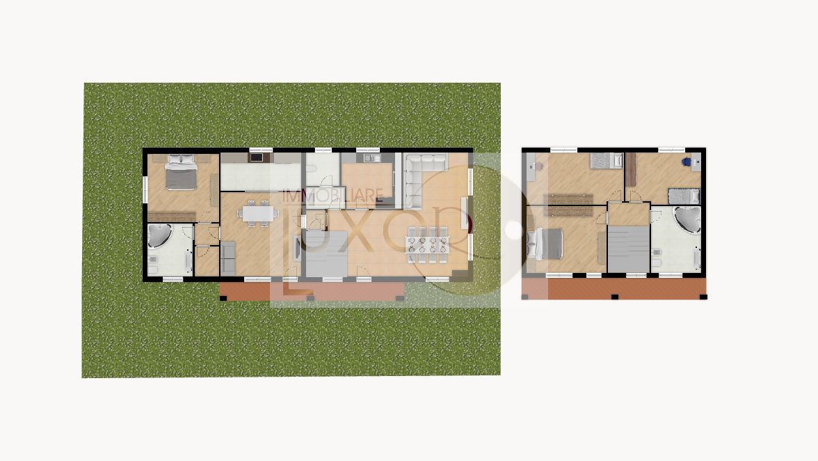 SOLUZIONE VENDUTA! AVETE LA NECESSITA’ DI AVERE VICINO UN FAMIGLIARE MA OGNUNO CON LA PROPRIA INDIPENDENZA? OPPURE CERCATE UNA CASA CON ADIACENTE UNO SPAZIO DA ADIBIRE A STUDIO PROFESSIONALE? Nelle vicinanze del centro paese, in posizione dominante e con vista aperta, proponiamo VILLA SINGOLA divisa in 2 unità immobiliari distinte, circondata da un piacevole giardino privato. L’abitazione principale, al piano terra, è caratterizzata da una zona giorno di 60 mq dove troviamo un luminoso soggiorno, la cucina abitabile e il servizio. Il reparto notte, al piano primo di 70 mq, è composto da tre confortevoli camere da letto ed il bagno principale con vasca jacuzzi. Al piano interrato, di 60 mq, è presente una taverna con predisposizione camino, un bagno ed una lavanderia. L’immobile secondario è al piano terra e si sviluppa su un unico piano di 60 mq. E’ suddiviso in soggiorno, la cucina, la camera da letto, il bagno con la vasca jacuzzi ed un praticissimo ripostiglio. Al servizio dell’immobile secondario troviamo al piano interrato, sempre di 60 mq, una favolosa taverna con camino, la lavanderia ed un servizio. Completa il tutto un giardino di 600 mq, di cui l’ 80% pianeggiante ed il resto leggermente degradante, ed un enorme box di 125 mq, con altezza di 3,30 mt, sito al piano interrato.