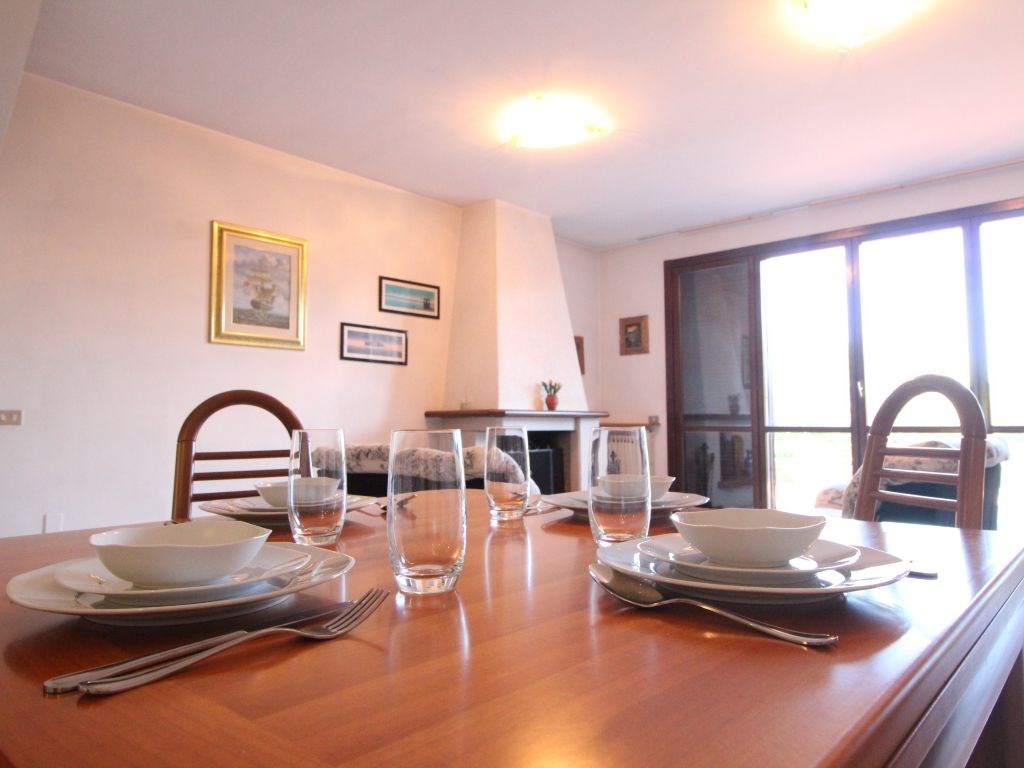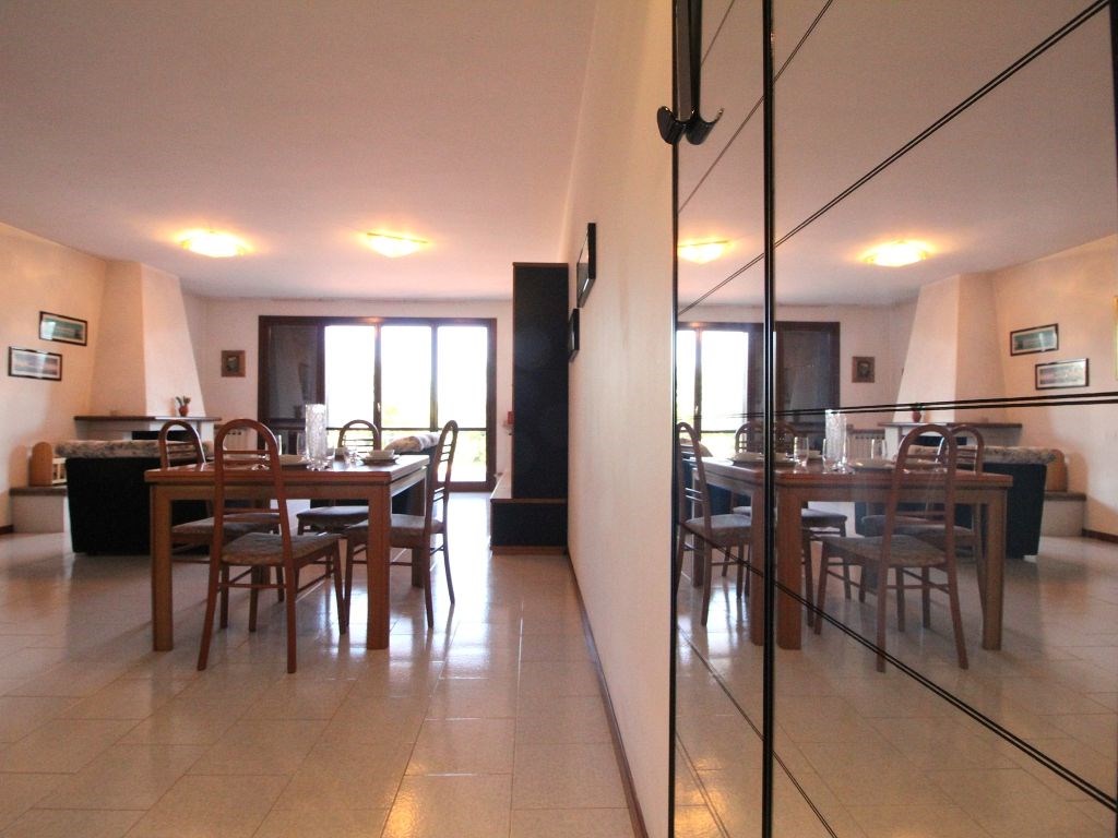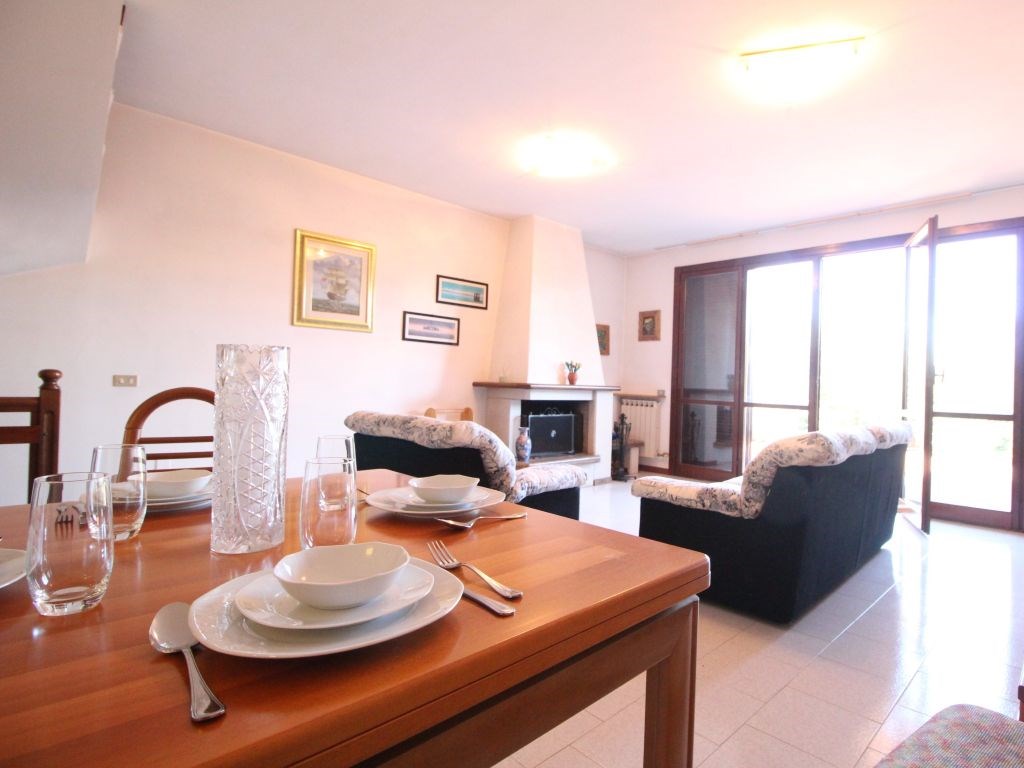 La casa accoglie con calore: un soggiorno luminoso, il camino che racconta serate d’inverno e una grande portafinestra che si apre sul terrazzo di 100 mq, perfetto per cene d’estate e risate in compagnia.
