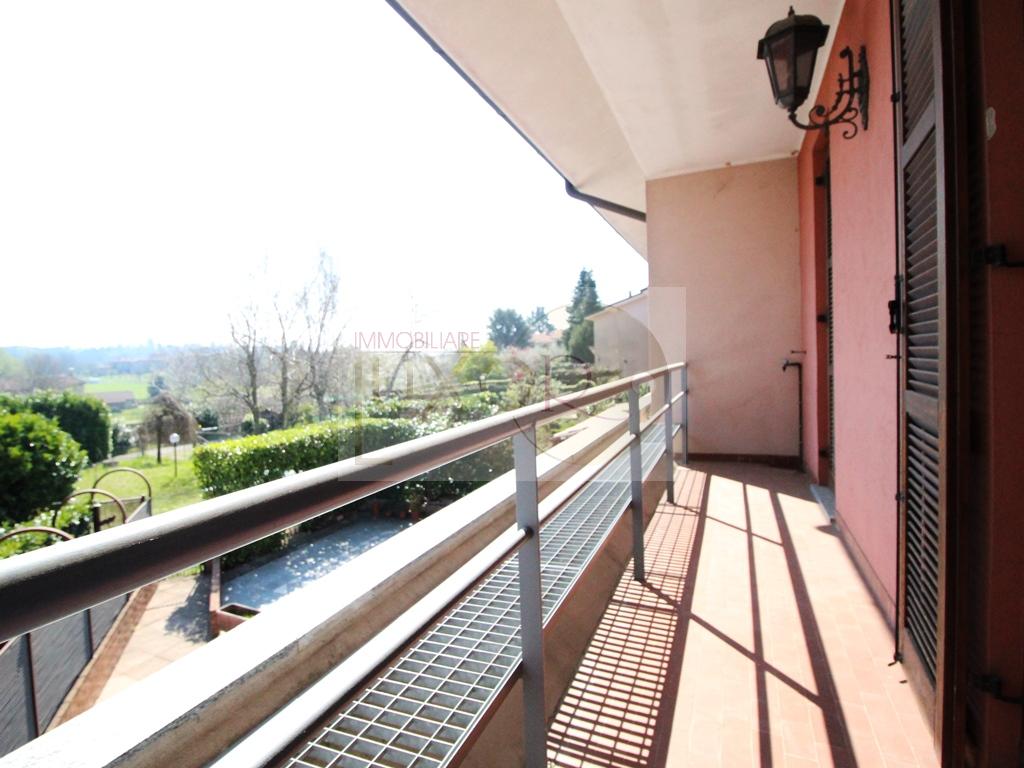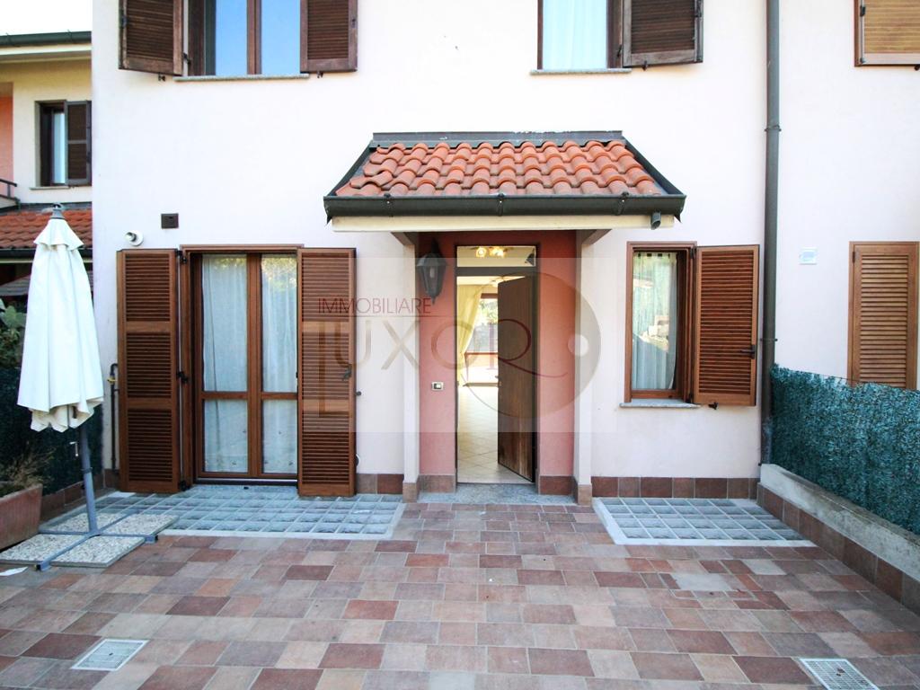 IMMOBILE VENDUTO! STAI CERCANDO UNA VILLETTA CON SFOGO ESTERNO? ECCOLA! La Villa a schiera centrale è disposta su due livelli abitativi di 54 mq per piano ed è caratterizzata al piano terra da un ampio e luminoso soggiorno con accesso al patio scoperto esposto ad Est, la cucina abitabile comprensiva dell’arredo con accesso al secondo patio di ingresso esposto ad Ovest ed il bagno di servizio con doccia. Il piano primo ospita tre camere da letto, di cui due matrimoniali, il bagno padronale con vasca e un balcone panoramico con vista sul paesaggio naturale. L’interrato, di 60 mq, è composto da una piccola taverna, la lavanderia ed un box doppio in larghezza direttamente collegato. L’immobile NON HA giardino privato, ma ha due aree pavimentate fronte e retro, per un totale di 80 mq.